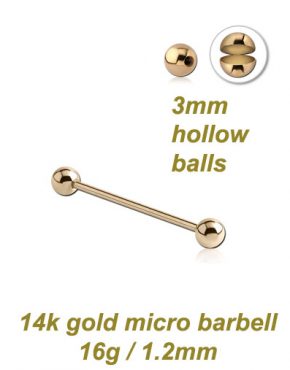 GPMBLC-Gold Plated 16g Micro Barbells with Cones