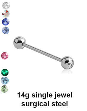 SCNS45-14g Surgical Jewelled Nipple Barbell