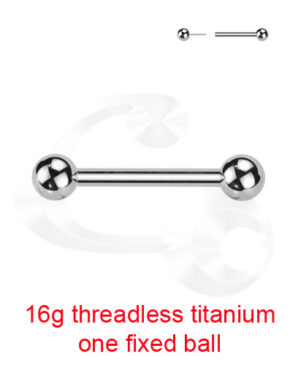 TPFINMBL-Titanium Threadless Barbell with One Fixed Ball – 16g
