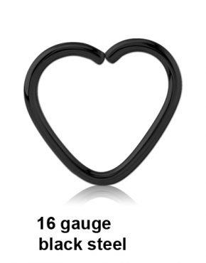 BKHCOBC-Black Steel Heart Continuous Rings–1.2mm/16g