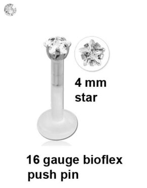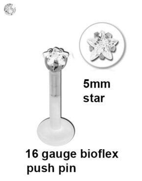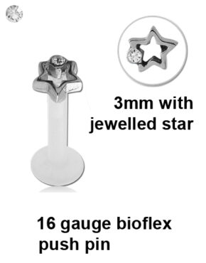 XINLBJ10-Bioflex Internal Labret Pin-Steel Cast Attachment-3mm Star with Jewel