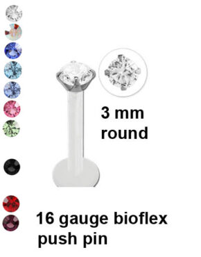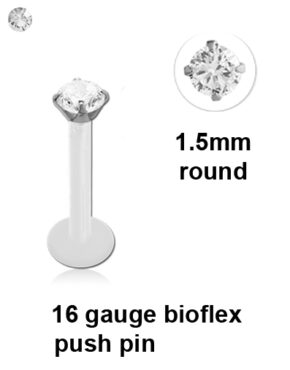 XINLBJD-Bioflex Internal Labret Pin-Clear Bioflex Jewelled Disk-2.5mm