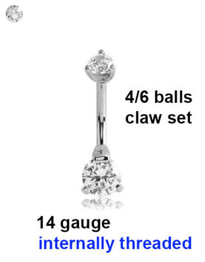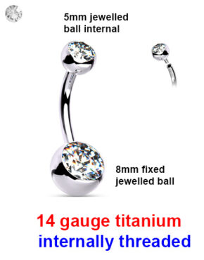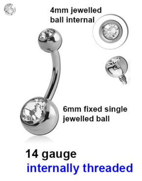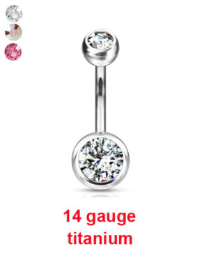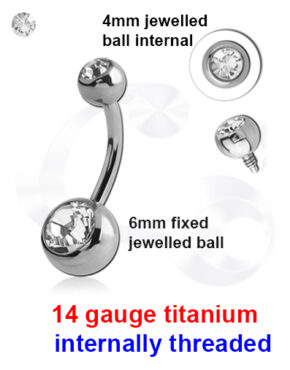 TSBNDJ-14g Jewelled Titanium Navel Bananas-4/6mm Jewelled Balls