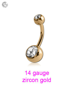 ZGBNDJ-Zircon Gold Jewelled Curved Navel Barbells