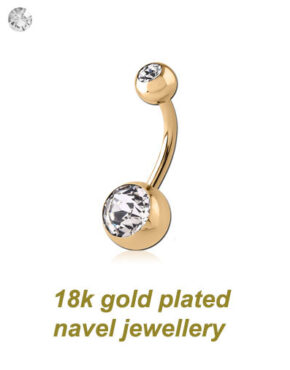 G18BNDJ-OP 14g Jewelled 18k Gold Plated Navel Banana-5/8mm Jewelled Balls