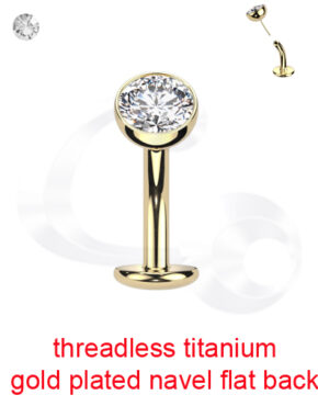 GP-TPFINBNFB-Gold Plated Titanium Threadless Jewelled Flatback Navel Banana