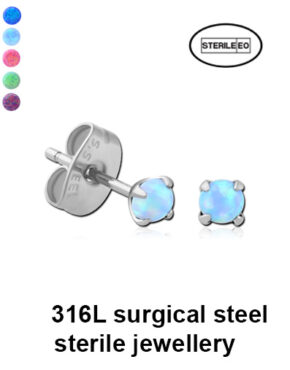 Z-SES1-OPL-Sterile Surgical Steel Ear Studs-Synthetic Opal