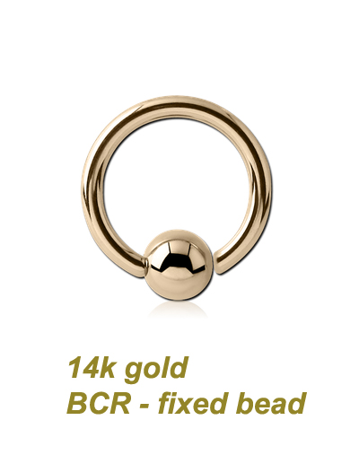 This 14k gold BCR has a fixed bead and can be bent by hand. No need for tools.