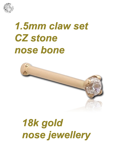18k gold nose bone – prong set with 1.5mm CZ stone