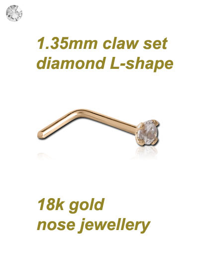 18k gold nose bone with 1.35mm prong set diamond