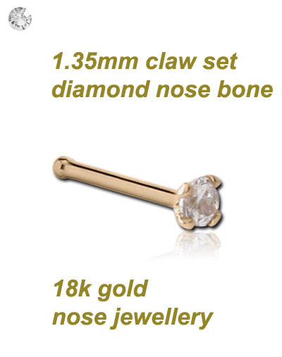 18NOJ3WD-B-18K Gold Nose Bone / 1.35mm Prong Set Diamond