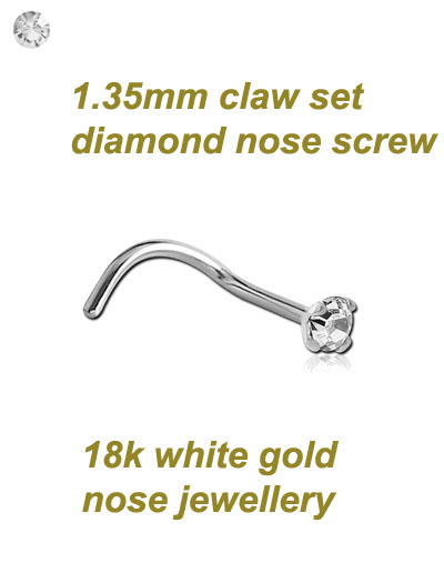 18k white gold nose screw with 1.35mm prong set diamond