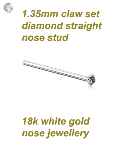 18k white gold straight nose stud with 1.35mm prong set diamond
