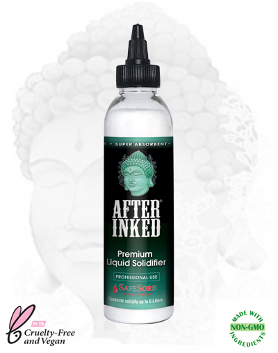 After Inked® SafeSorb® is a premium super absorbent granular polymer that quickly and effectively solidifies liquid waste associated with tattooing and permanent makeup procedures.
