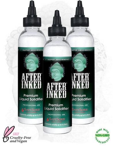 After Inked® SafeSorb® is a premium super absorbent granular polymer that quickly and effectively solidifies liquid waste associated with tattooing and permanent makeup procedures.