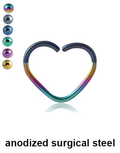 Anodized heart continuous rings are made with 316L surgical steel and can be opened by hand. Available in 16g only. Diameter is 12mm.