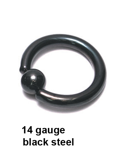 Black steel is surgical steel 316L coated by using a PVD process (physical vapor deposition). This coating is extremely resistant to scratches. Dimpled ball for this piece is 4mm.