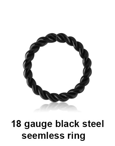 Black steel seemless rings are made with 316L surgical steel and coated by using a PVD (Physical vapor deposition). The coating is extremely resistant to scratching.  These continuous rings and can be opened by hand.