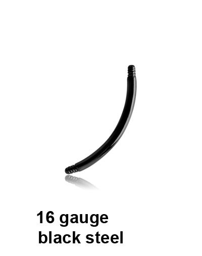 Curved black steel micro barbell pins with for eyebrow jewellery.