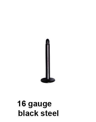 Black steel (316l surgical steel) micro labret pins with 4mm base.