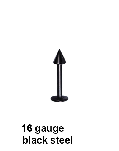 Black steel micro labret with 3mm or 4mm cones. Base is 4mm.