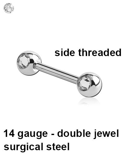 BLDJS–14g Side Threaded-Double Jewelled Barbells