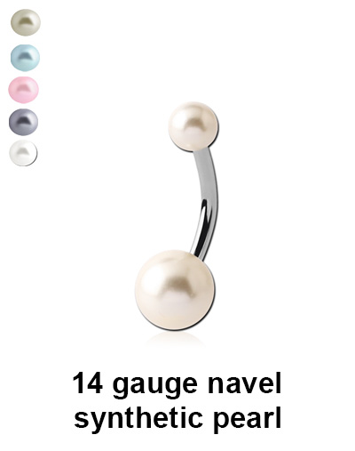 BNNPE-14g Synthetic Pearl Curved Navel Barbells , , , ,