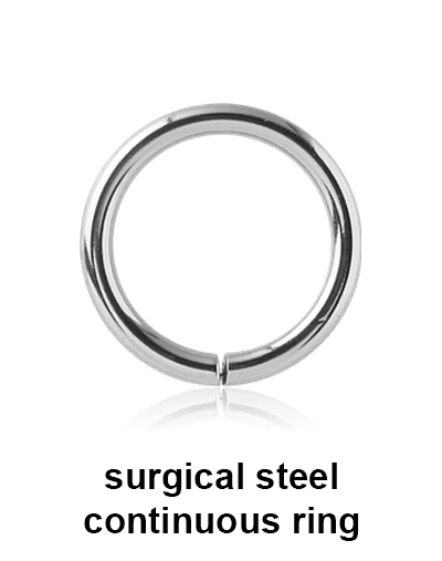 Continuous rings are made with 316L surgical steel and can be opened by hand. Available in 14g, 16g, 18g, and 20g.