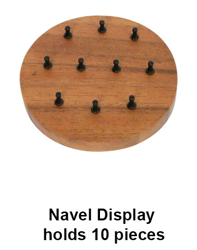 Attractive natural wood round display for navel jewellery. Holds 10 pieces.