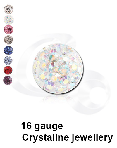 These 16g Crystaline micro balls have a light epoxy coating to help prevent the individual stones from dislodging or falling out.