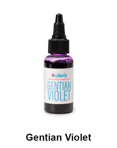 Gentian Violet (crystal violet, Methyl Violet 10B, hexamethyl pararosaniline chloride) is a bactericide and an anti-fungal agent. The primary agent used in the Gram stain test, Gentian Violet is perhaps the single most important bacterial identification test in use today. It is also used by hospitals for the treatment of serious heat burns and other injuries to the skin and gums.