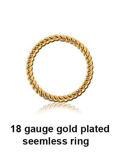 Gold plated (316L surgical steel) continuous rings can be opened by hand. They are safe to be auto-claved. Available in 18g