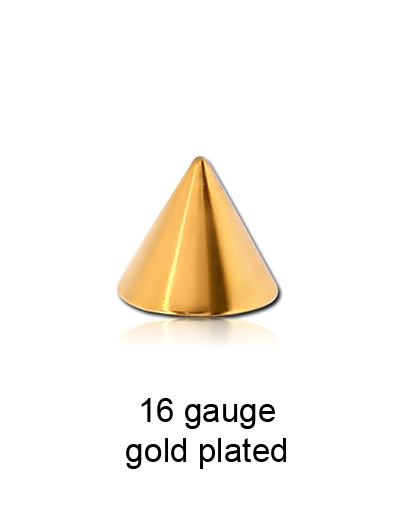 Gold plated cones (316L surgical steel) for 1.2mm/16g jewellery.