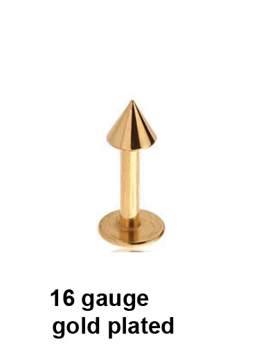 Gold plated (316L surgical steel) micro labret with cones are fashion jewellery and are safe to be auto-claved.