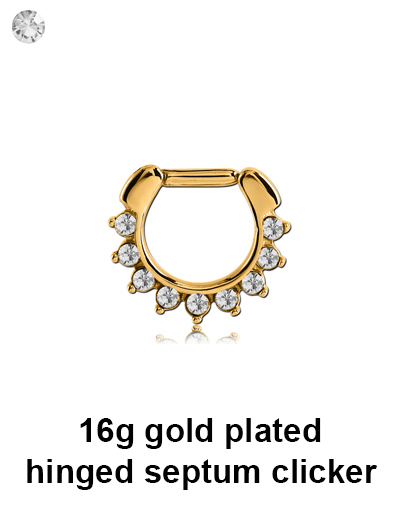 Gold plated(316L surgical steel) hinged septum clicker available in 16g only.
