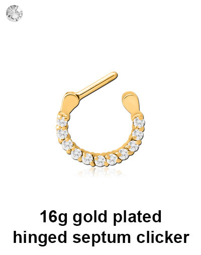 This 16g septum ring has a clicker mechanism with a hinge closure, allowing for easy insertion and removal of the jewellery.