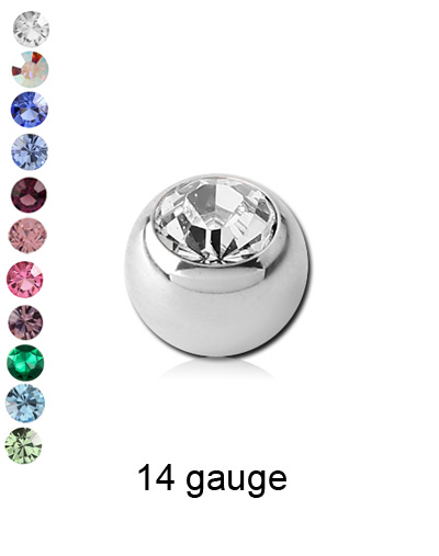 Jewelled surgical steel balls for 1.6mm/14g jewellery in a variety of colors.