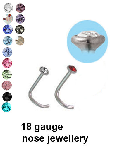 316L surgical steel nose screws with 2.35mm bezel set stone.