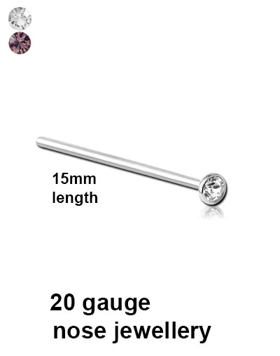 316L surgical steel straight bezel set nose studs with 2.35mm stone. 20 gauge post.
