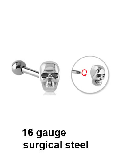 This 16g micro barbell has a steel cast skull attachment and 3mm ball. Available in a variety of lengths.