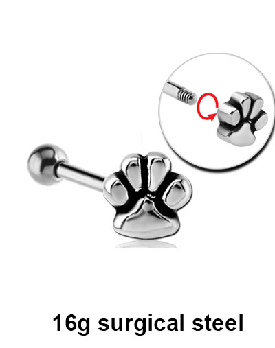 This 16g micro barbell has a steel cast paw attachment and 3mm ball. Available in a variety of lengths.