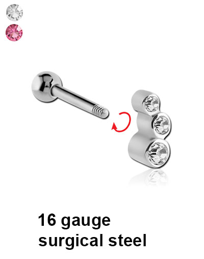 This 16g micro barbell has a steel cast jewelled attachment and 3mm ball. Available in a variety of lengths.