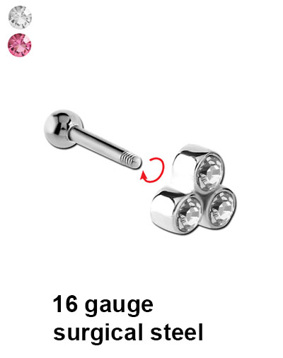 This 16g micro barbell has a steel cast jewelled attachment and 3mm ball. Available in a variety of lengths.