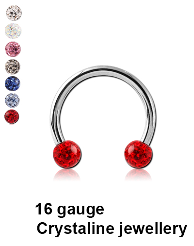 These 16g Crystaline circular barbells have a light epoxy coating to help prevent the individual stones from dislodging or falling out. They are not meant to be autoclaved.
