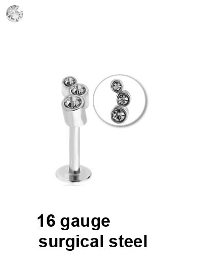 Surgical steel micro labret with steel cast jewelled attachment in a variety of lengths.