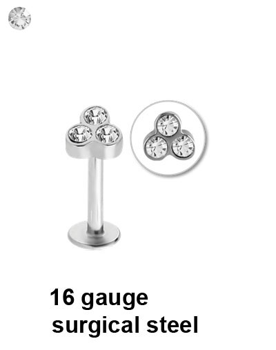 Surgical steel micro labret with steel cast jewelled attachment in a variety of lengths.