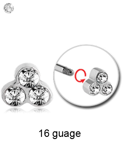 Jewelled surgical steel cast attachment for 1.2mm/16g externally threaded jewellery.