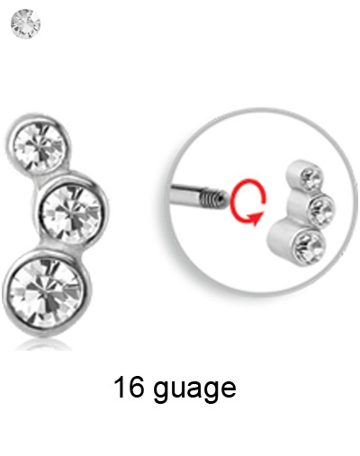Jewelled surgical steel cast attachment for 1.2mm/16g externally threaded jewellery.