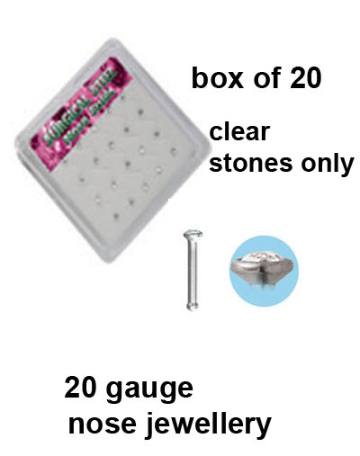 NOBJ-0.8-Surgical Steel Jewelled Nose Bones-20 Box-CR only quantity