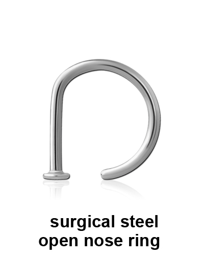 Surgical steel open nose ring in 18 gauge.